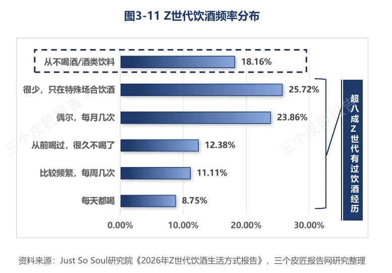 超80%的Z世代有过饮酒经历,但高频饮酒者不足20%。