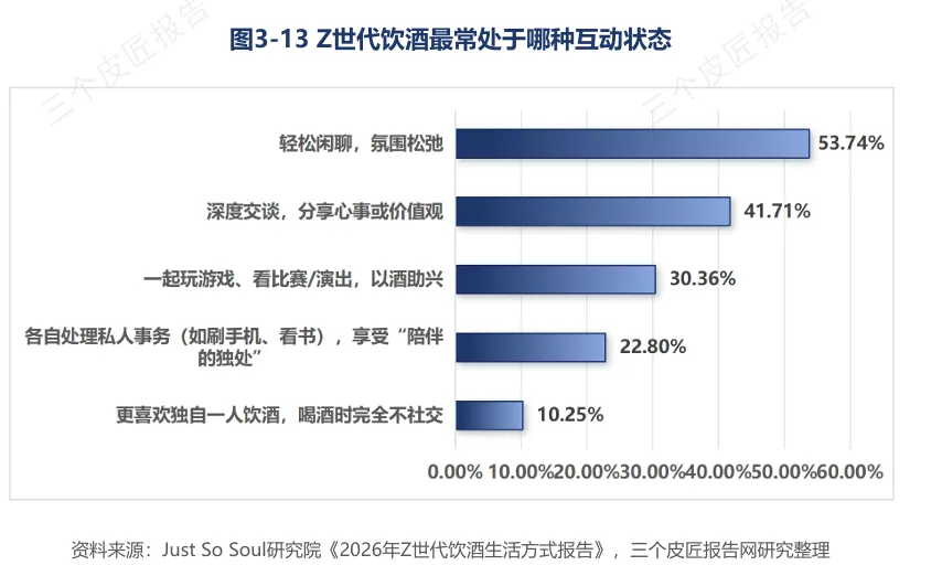 超六成Z世代在缓解压力或放松心情时最想饮酒,43.15%将酒视为生活的“氛围滤镜”。