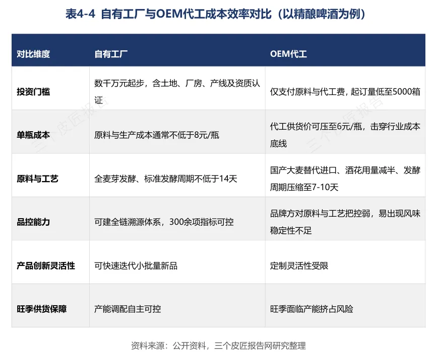 代工厂通过国产大麦替代进口、酒花用量减半、发酵周期压缩至7-10天等路径实现成本压降,500ml听装精酿供货价可压至6元/罐。高达60%的产能处于闲置状态,新酒饮新品上架后存活率普遍不足30%,动销率跌破40%。智能化产线使生产效率提升200%以上,人工成本降低70%-80%。