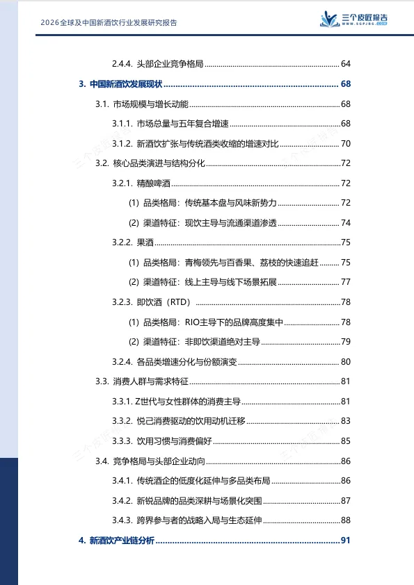报告从行业定义、全球市场、中国现状、产业链、竞争格局、挑战与趋势六个维度,系统解析了新酒饮产业的演进逻辑。本文提炼七大核心结论。