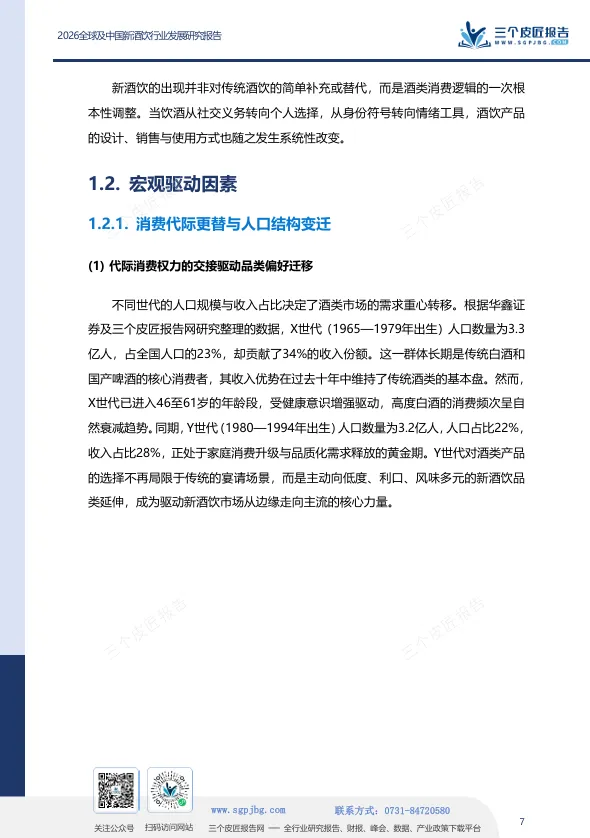 X世代(1965-1979年出生)人口3.3亿,贡献34%收入份额,但已进入健康意识增强、高度白酒消费自然衰减的年龄段。