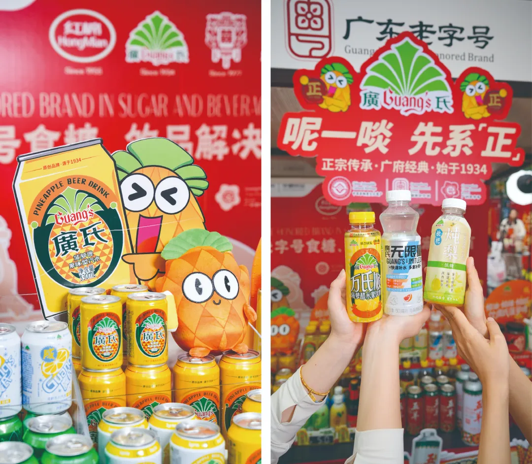 此次出征广交会,华糖食品以“红棉”“廣氏”“五羊”“双喜”四大核心品牌组成阵容亮相。其中,“红棉”是国内少数能提供食用糖全品类解决方案的企业,产品线覆盖从1克调糖包装到1吨工业原料的全链条,在国内首创的精制白砂糖堪称匠心典范,多年来位居全国糖业质量评比榜首,成为多家跨国食品企业国内主要供应商;拥有近百年历史的“廣氏”品牌,其菠萝啤酿造技艺早已被列入黄埔区非物质文化遗产代表性项目,历经数代创新传承与数智赋能,于今年3月品牌战略发布会完成焕新,以“怕油怕辣怕腻,饮廣氏菠萝啤”的精准场景锚定为抓手,主动拥抱健康食饮趋势与年轻消费潮流;而“五羊”精酿秉承粤酿风味根植广州,“双喜”则聚焦喜庆场景打造高端原浆啤酒。四大品牌集结矩阵,既有历史陈酿的醇厚积淀,亦不乏面向新时代的果敢破界。