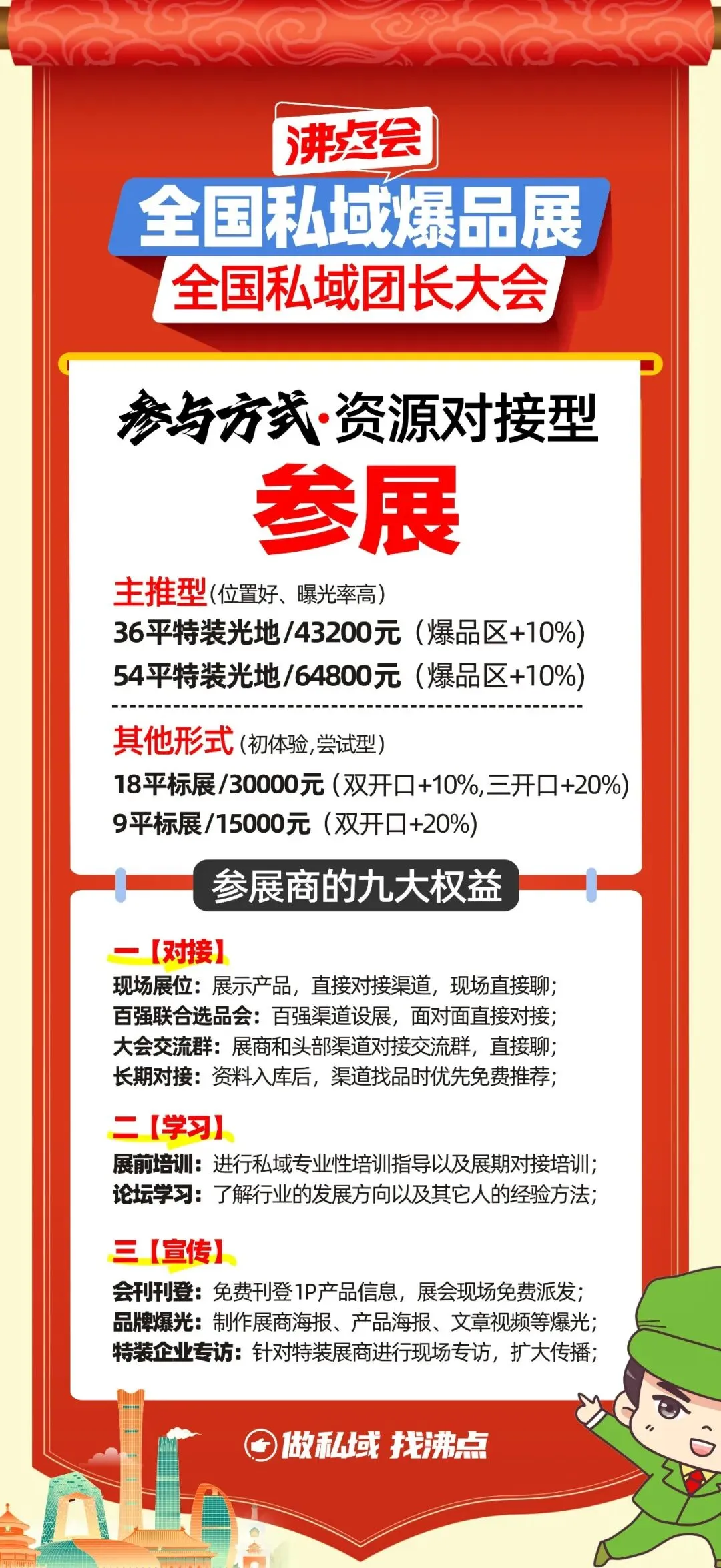 年中选品正当时,抢占先机不等待!不管是渠道方想找优质货源,还是品牌方想拓私域渠道,现在联系我(沸点郭凝 13189743413),即可锁定优惠名额、优先选位!8 月 7-10 日,广州琶洲,与数万私域精英一起,共赴增长盛宴,引爆下半年销量!