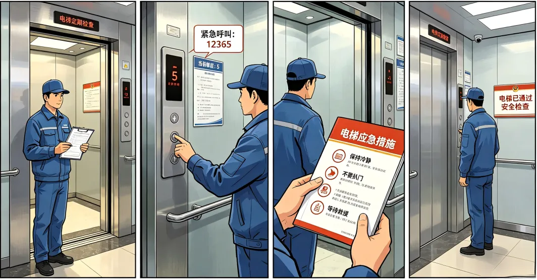 - 重点排查电梯、扶梯、消防电梯等特种设备,查看是否定期检修、张贴合格标识,运行无异常。