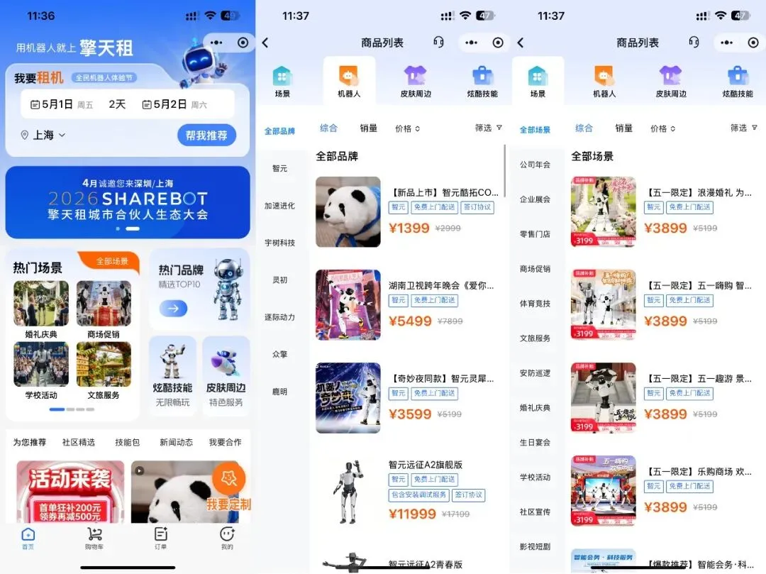 对企业而言,花几千元就能租用一台机器人完成商演、巡检、导览,无需承担数十万的购置成本与运维压力,“轻资产使用”替代“重资产采购”,无疑会成为中小企业的最优选择。