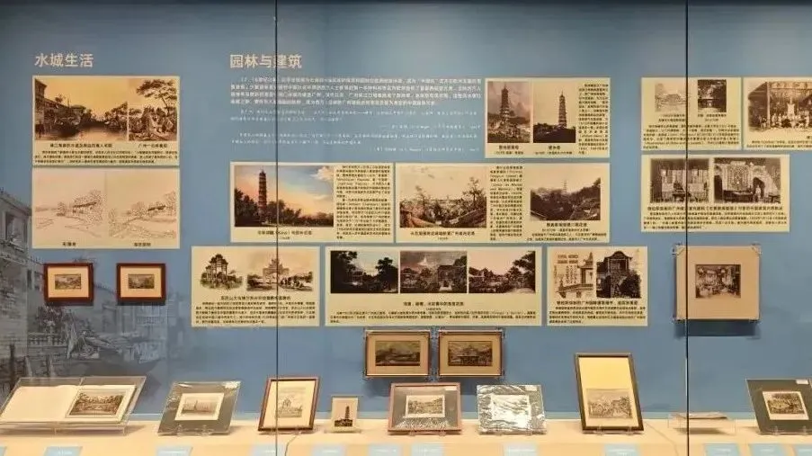 本次展览以伦敦邱园模仿建造中式塔为实例,结合广州亭台、牌楼等典型建筑的画作,展现中国造园及建筑文化向全球传播的过程。
