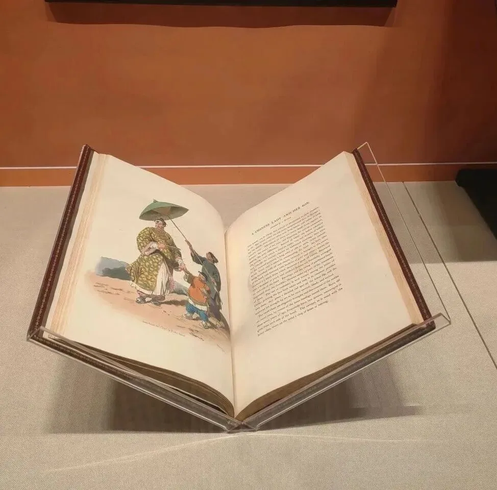 除了各类材质的影像展品外,展览甄选了与广州相关的珍贵西方游记或中外交流专题书籍配套展出,其中包括18世纪末出版马嘎尔尼访华使团相关的《英使谒见乾隆纪实》《英使来华记》及使团画师亚历山大出版的《中国服饰》;托马斯·阿鲁姆著《中华帝国图景》的1842年英文版和1850年的法文版,罗伯特·福琼著1852年出版《中国茶叶之乡纪行》,1771年出版瑞典博物学家彼得·奥斯贝克著《中国和东印度群岛旅行记》等,展出的古籍本身在中西交往、科技交流史上具有重要影响力,是西方人了解中国的经典著作。