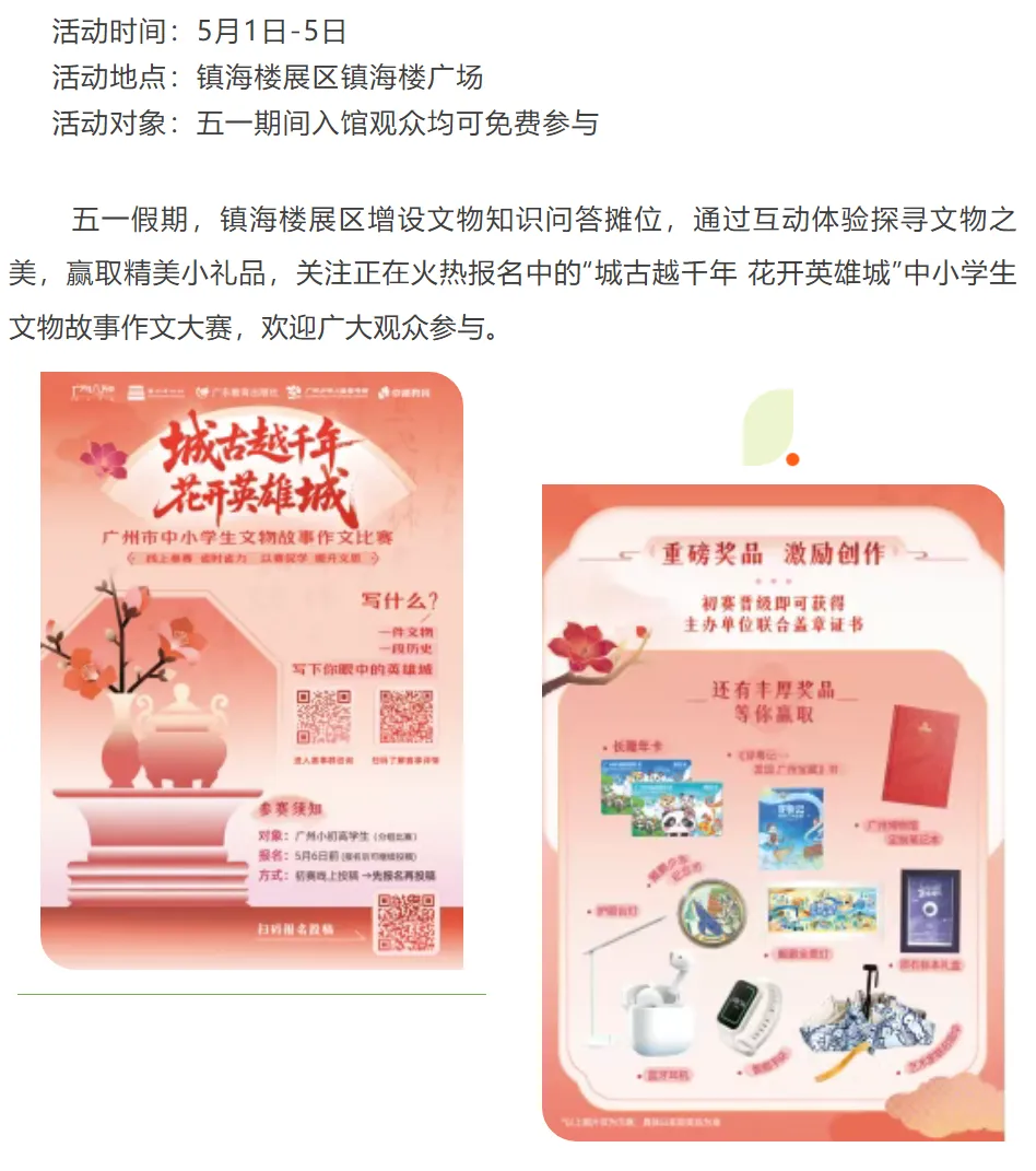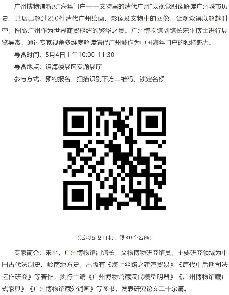 五一假期,配合“海丝门户——文物里的清代广州”展览,广州博物馆精心准备了专家导赏和多场互动体验活动,邀您共赴一场假日文化之约。