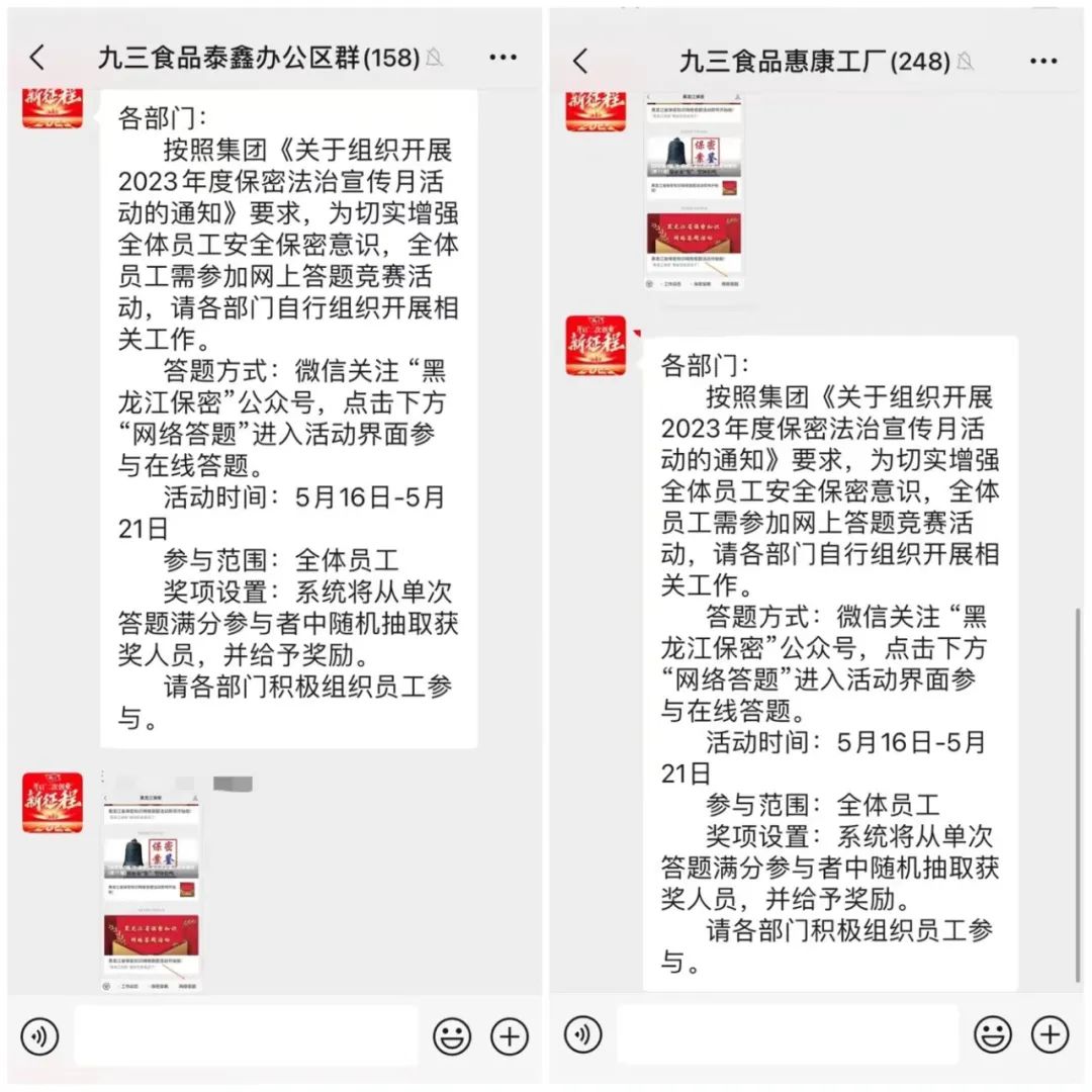 为切实提高全体员工保密意识,增强保密观念,按照保密宣传教育月活动相关工作安排,5月16日,九三食品股份有限公司组织全体员工参与黑龙江省保密知识网络答题活动。