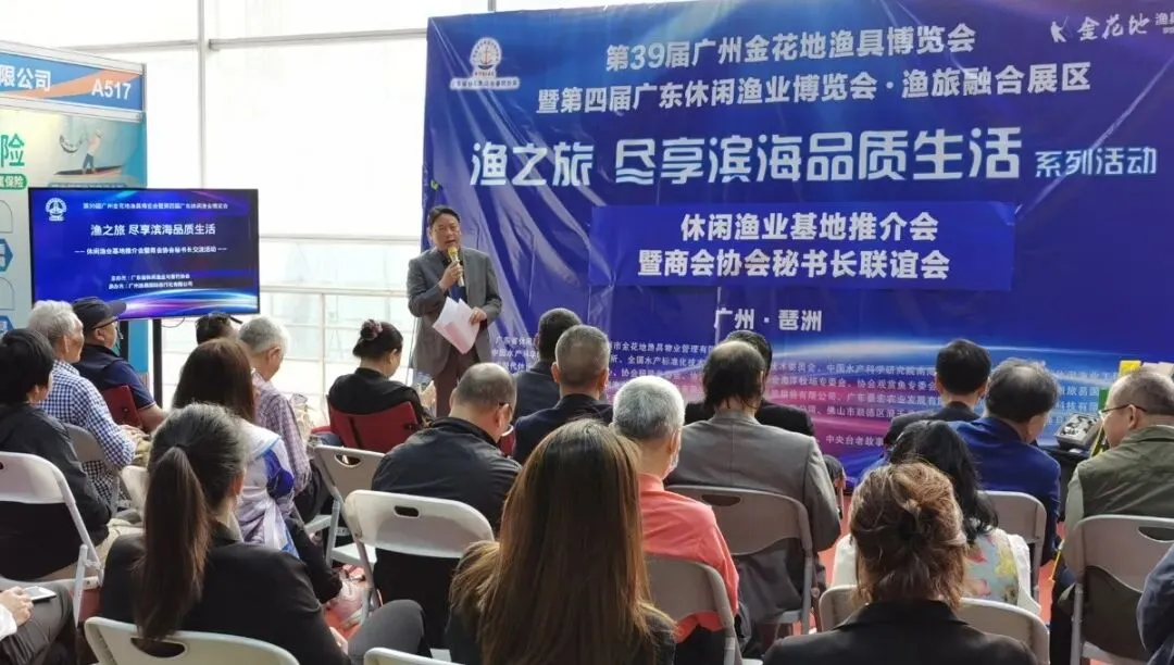 渔旅融合区活动以《第八期休闲渔业大家讲—休闲垂钓活动趣事及保障体系》、休闲渔业基地推介会暨商会协会秘书长交流为主,现场气氛热烈,吸引现场观众驻足观看。