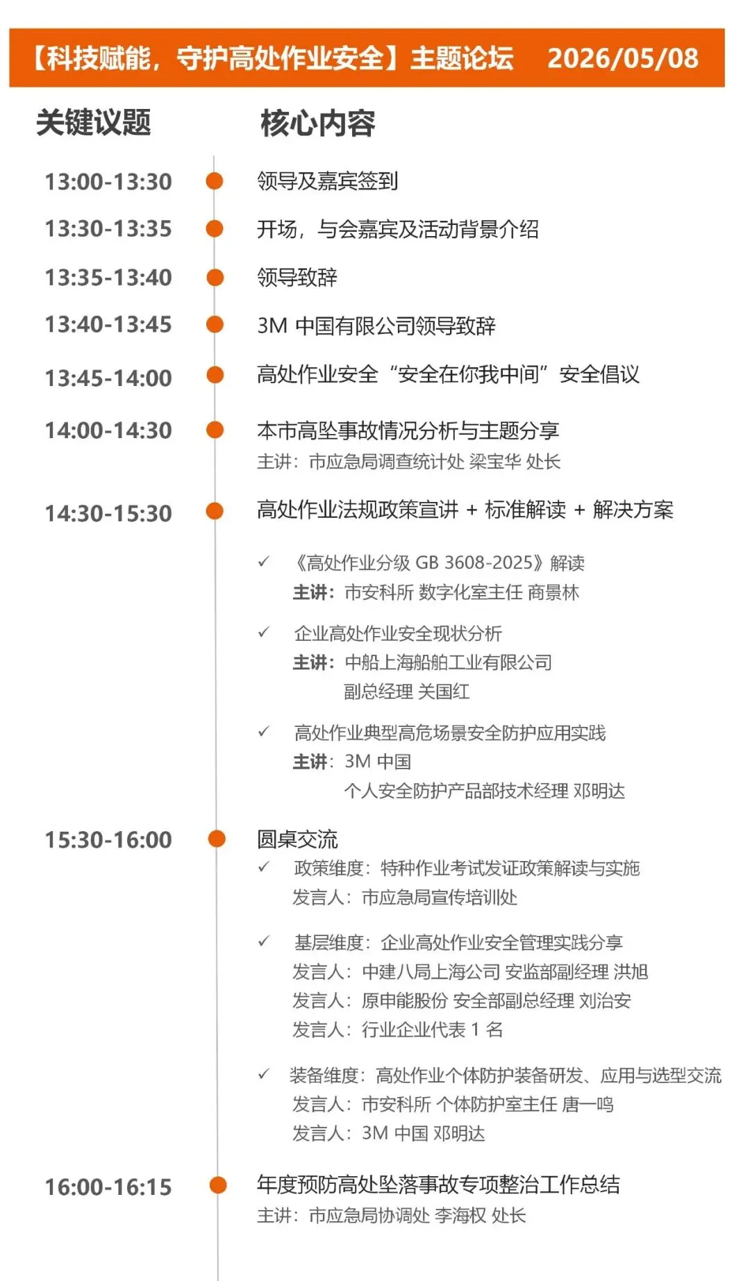 由3M 中国、上海市安全生产科学研究所、上海市应急管理与安全生产协会联合打造的【科技赋能,守护高处作业安全】主题论坛将于5月8日在国家会展中心(上海)6.1H 会议区A举办。