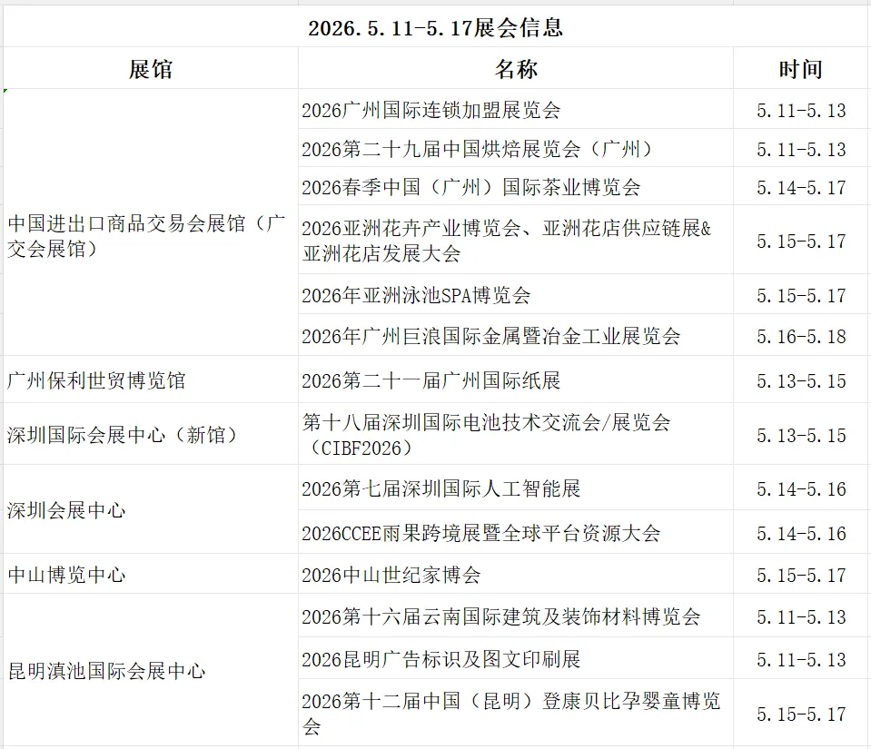 2026.5.11-5.17展会信息