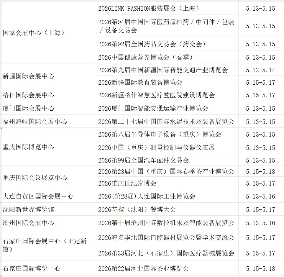 下期继续推送《2026.5.18-5.24展会信息》.