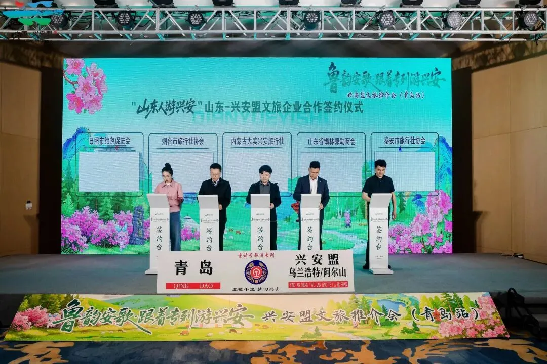 4月27日,由兴安盟文化旅游体育局主办,我会副会长单位内蒙古凯旋旅业国际旅行社有限公司承办的“鲁韵安歌·跟着专列游兴安”2026兴安盟文旅推介会(青岛站)在青岛海天大剧院酒店成功举办。