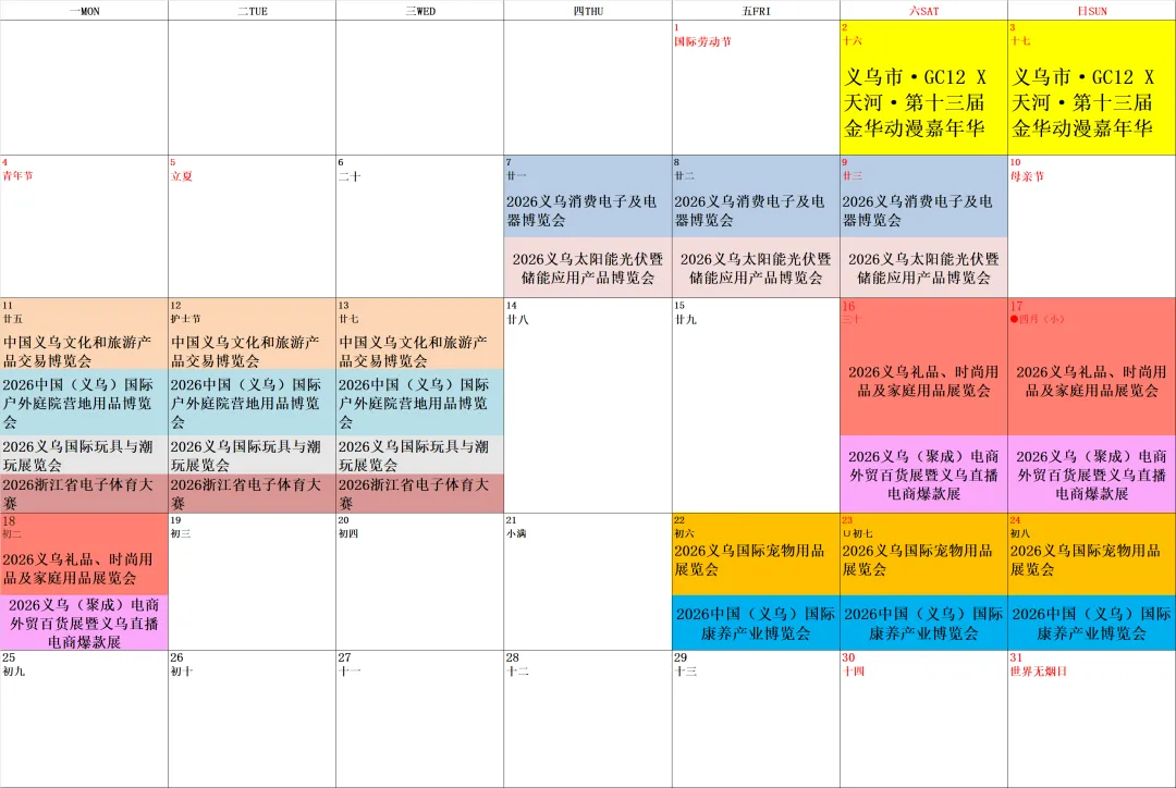 1、展会预告中的展览时间、名称,最终以义乌国际博览中心与主办单位签订的合同为准。