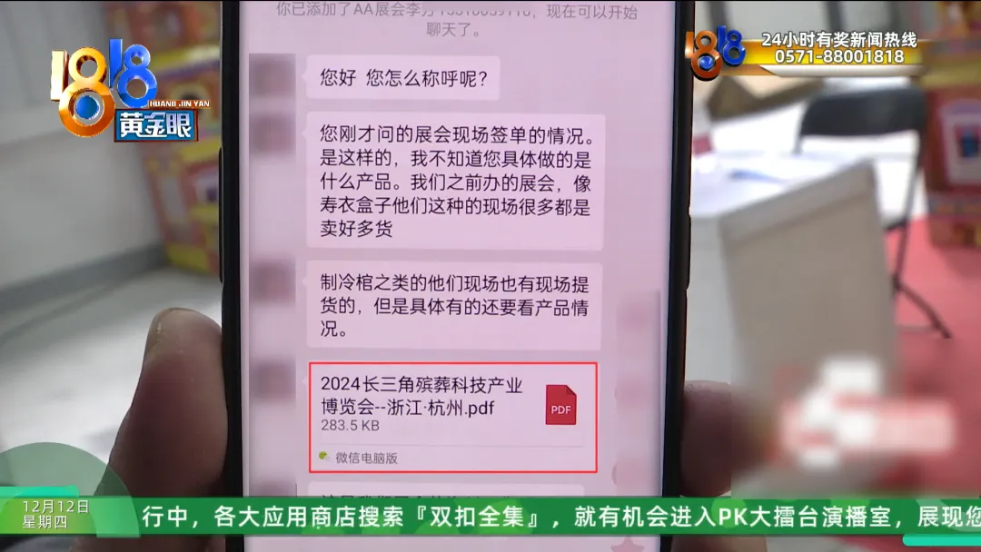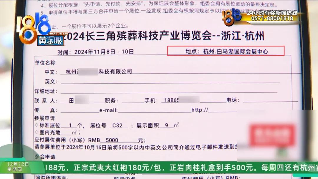 田老板:她说的是在白马湖国际会展中心,很高档,名字叫做殡葬科技产业博览会。而我们也是一家科技公司,我们就寻思说报名对吧。