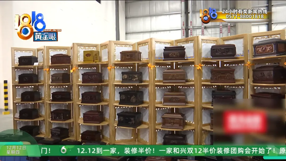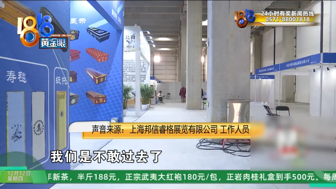 杭州临安环球科创园招商中心 王经理:他们当时来是跟我们说,是那个古玩,相当于就是做那种佛像、佛珠、手串之类的东西的。后来,我们到昨天到现场看展以后,变成是殡葬一条龙服务了。所以我们也是,到现在也是变成了这样,我们现在自己员工都不敢去看。