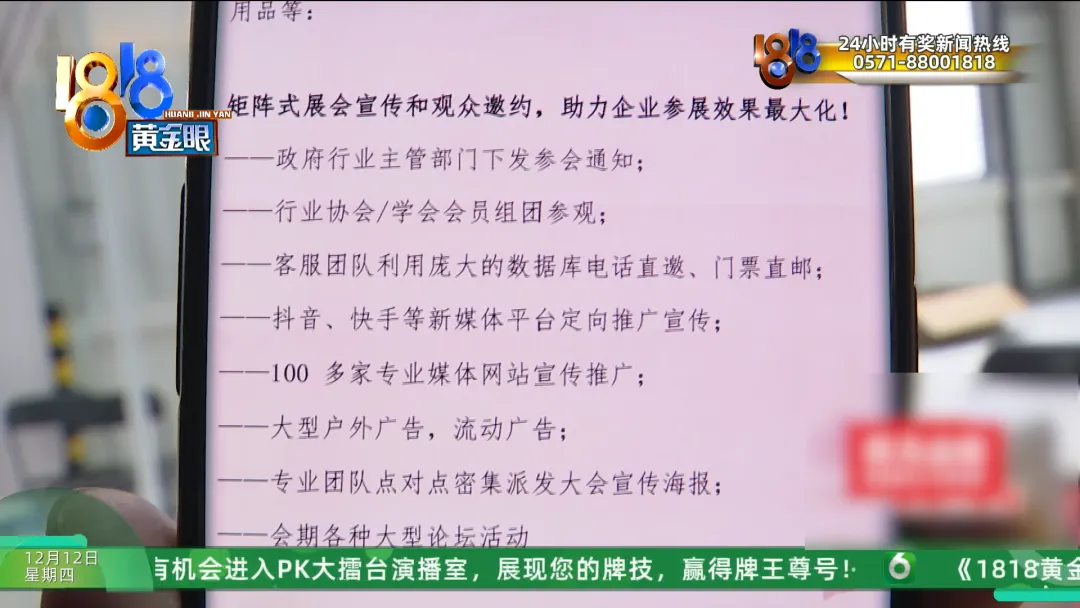安徽宣城参展商 葛老板:在这里花了五千块钱,在成都花了一万三千多。成都,也是(同)一个展商的,它属于是成都已经赚到利润了,到这里又是这个情况。它就通过变那个展会的位置时间,让你们走一个虚假的东西,就是把钱赚到了。