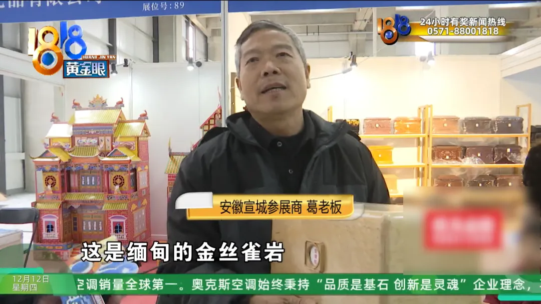 安徽宣城参展商 葛老板:这是缅甸的金丝雀岩。