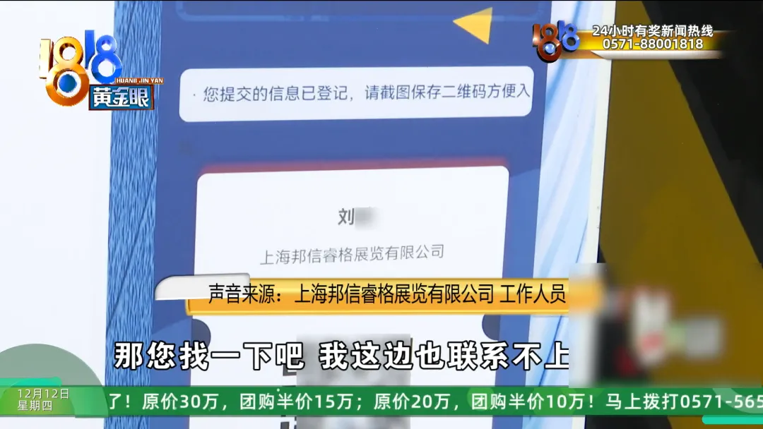 上海邦信睿格展览有限公司业务员 李女士:人家有的临时不来了呀,但是我们正常宣传了呀。