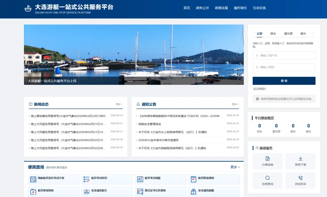 为严格落实《大连市促进邮轮游艇产业高质量发展工作实施方案》,在大连市促进邮轮游艇产业高质量发展工作专班指导下,海发文旅严格执行《大连市水上旅游指导意见(试行)》将码头、港口、游艇(含海钓艇及5米以下水上摩托艇、水上跑车、橡皮艇等)、经营主体及从业人员全流程纳入“一站式平台”统一登记管理的明确要求,按照方案部署的时间节点,提前完成了“大连市游艇一站式公共服务平台”的建设工作。
