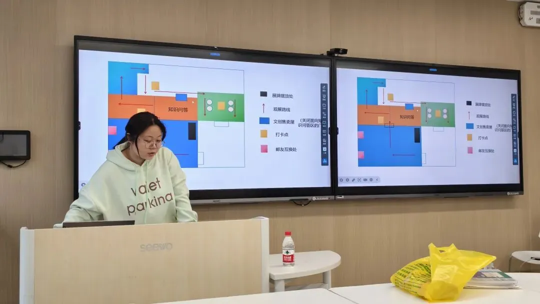 然后,由浙江树人学院会展经济与管理专业大三学生朱贝贝代表本次展览大学生策展团队,具体汇报了展览策展、路线、场景、打卡点、设计等准备工作。