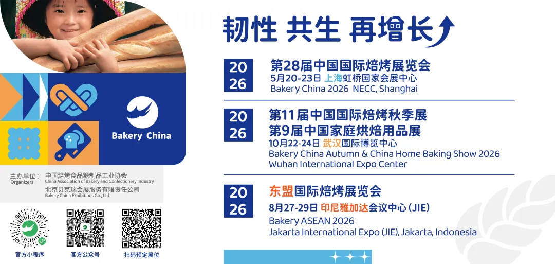 点击【阅读原文】,免费领取2026第28届中国国际焙烤展展位(5.20-23,上海虹桥国家会展中心)100元门票!