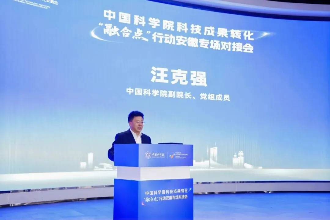 汪克强在致辞中表示,中国科学院将立足国家战略科技力量使命定位,进一步加强与安徽省的协同联动,聚焦关键核心技术攻关与科技成果转化落地,为安徽建设高水平科技创新高地提供有力支撑。