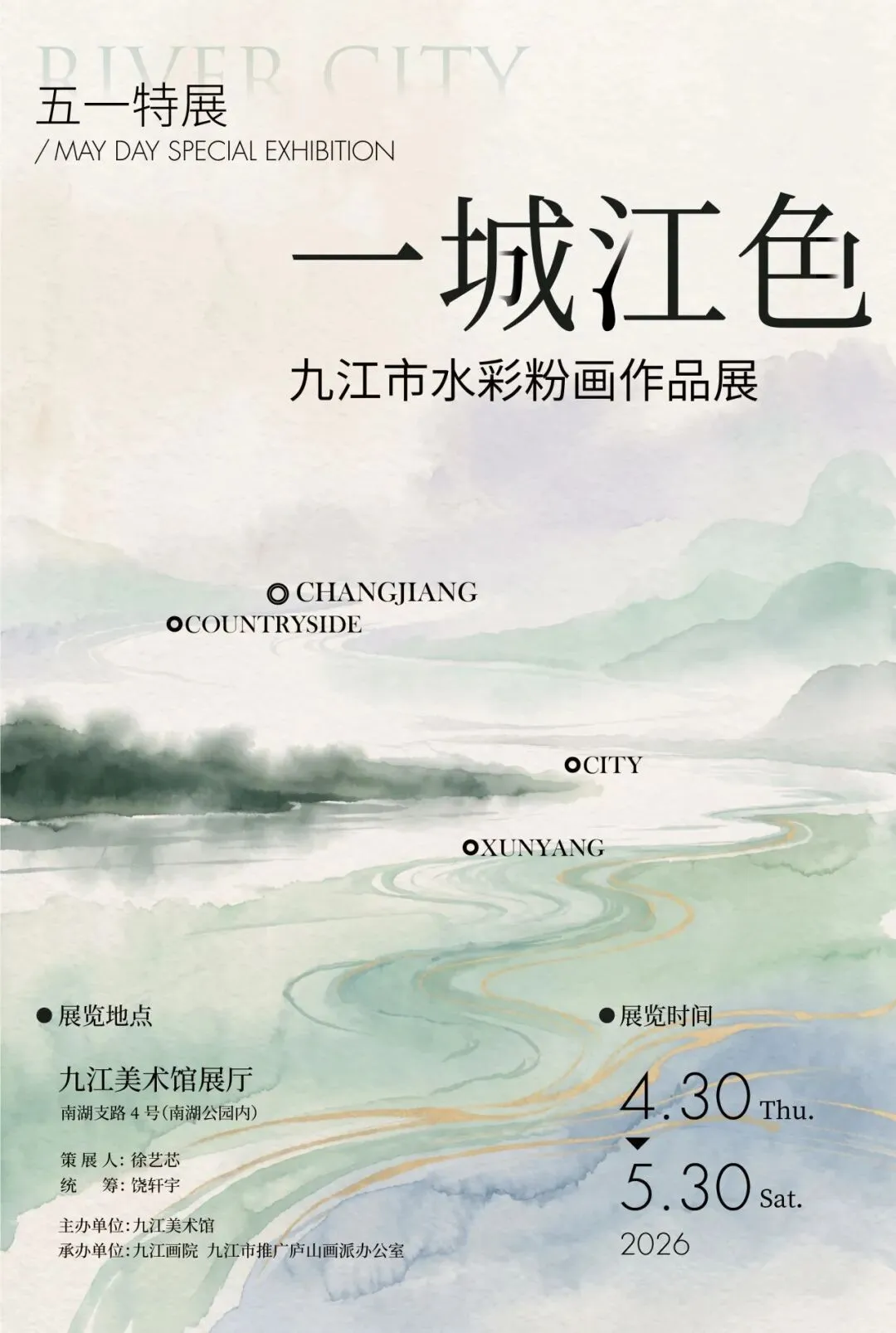 长江滋养九江千年,孕育了厚重的浔阳文脉,也见证着城市发展、乡村振兴与生态建设的崭新成果。长江之美、城市之兴、乡村之秀、人文之韵,共同勾勒出九江独有的地域气质,为本土艺术创作提供了源源不断的灵感。值此“五一”国际劳动节来临之际,我们以水彩粉画为媒介,推出“一城江色·九江市水彩粉画作品展”五一特展,水彩粉画轻盈通透、表现力丰富,是诠释九江自然风貌与人文底蕴的绝佳载体。以水为韵、以粉为魂,绘江域风华,书城市新章,用丹青致敬劳动、礼赞时代。