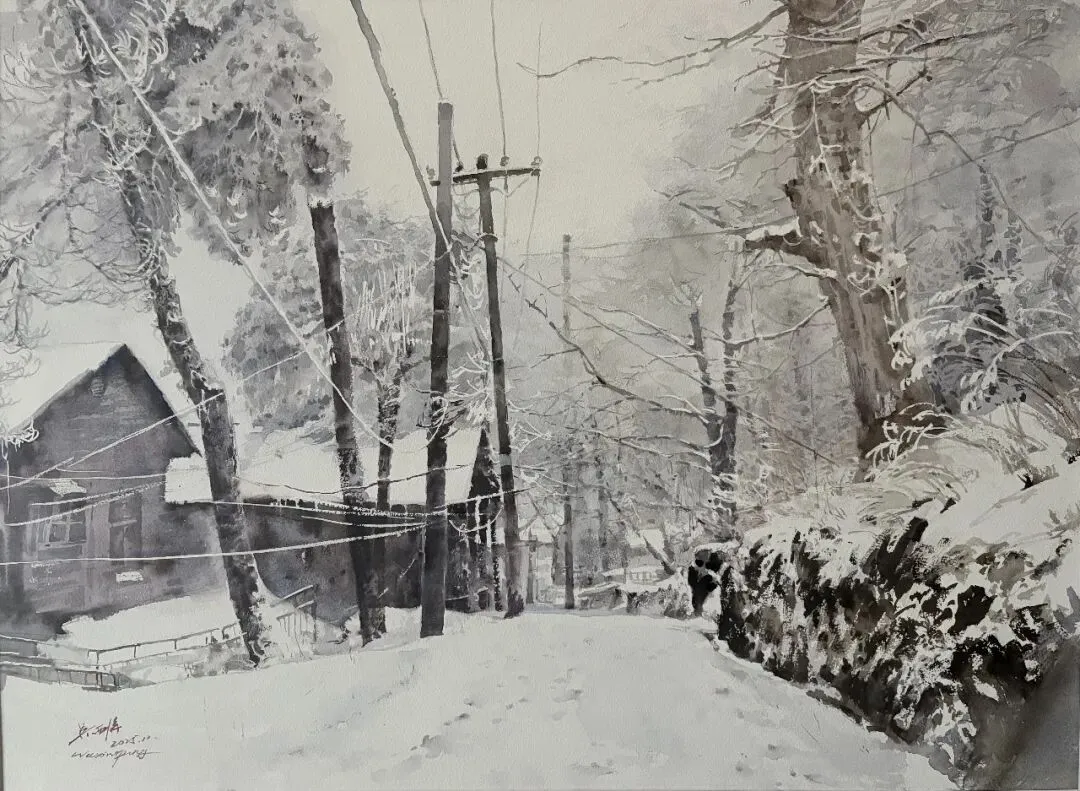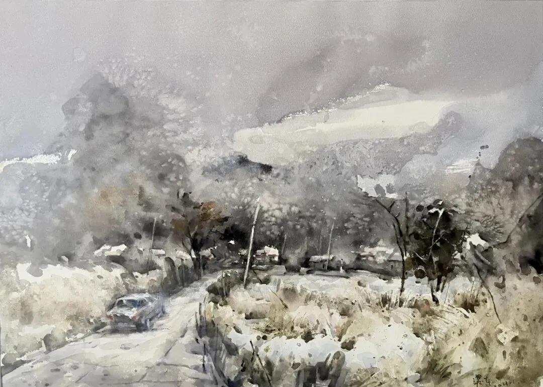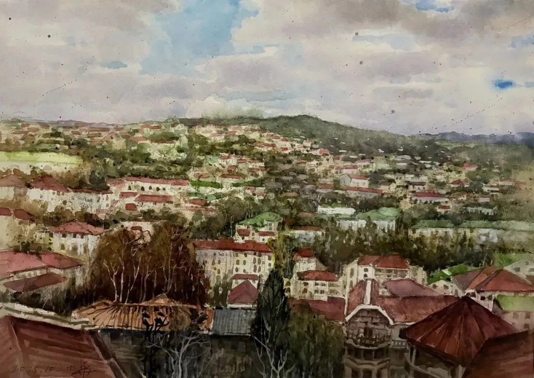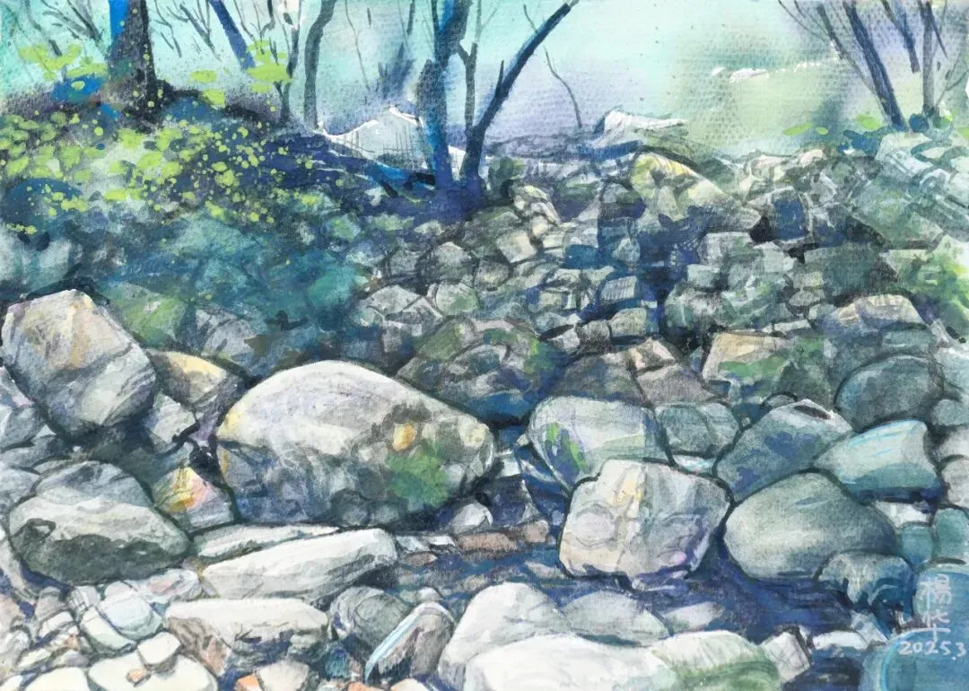 九江拥有一批功底扎实、技艺精湛、风格鲜明的水彩粉画艺术家,老、中、青三代创作者扎根本土、潜心创作,形成了稳定且优质的艺术梯队。孙九斌老师本次参展的《庐山之夏》《庐山雪》《雪霁》的三张作品以庐山的天气变化为主题,是对庐山景物的四季感悟;叶小华老师的《浔阳江畔》是展览主题“一城江色”的完美诠释;金燕群老师的《雨城》《雪中远眺》将水彩的细腻展现得淋漓尽致,用笔触复现城市气息与生活感触;刘雅丽老师的《相·石-9》则以独特造型舒胸中沟壑,展独特意趣……此次参展的21位本土艺术家以画笔为媒,聚焦长江岸线、城市变迁、庐山景致与本土风情,每一幅作品都饱含对家乡的深情,兼具思想性与艺术性,更是九江水彩粉画创作实力的集中展现。他们将对长江的敬畏、对家乡的眷恋、对时代的感悟凝于尺幅,通过本次五一特展走进大众,让美育浸润生活,丰富九江市民五一假期的精神文化生活。