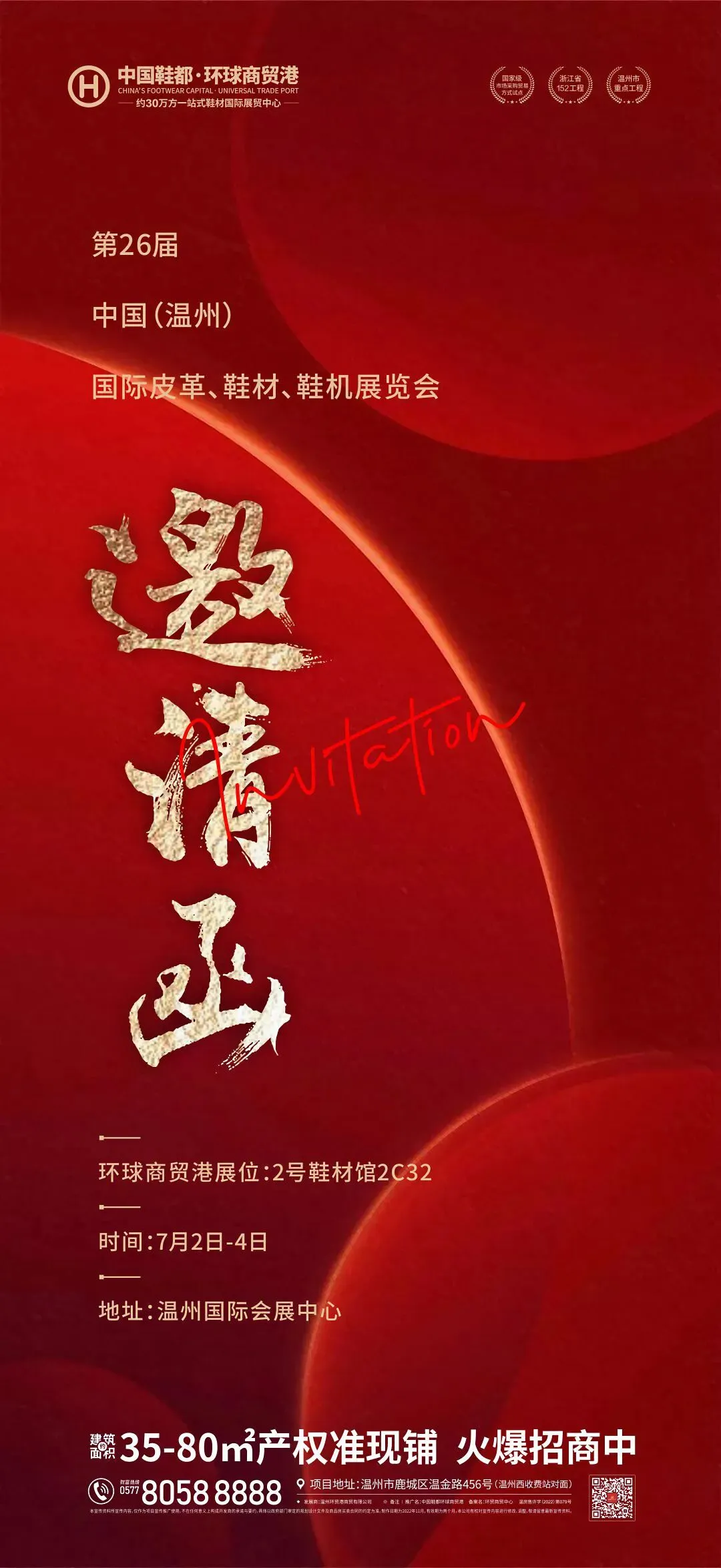 本文为项目宣传资料,不作为要约或承诺,相关信息仅供参考,具体以项目实际为准,本公司保留对宣传资料修改的权利。文中“中国鞋都·环球商贸港”、“环球商贸港·金座”为推广名,其备案名为环贸商贸中心;该项目开发商名称为:温州环贸港商贸有限公司,预售证号:温房售许字2022第031号、温房售许字2022第079号。文中所述长、宽、高均为大约数值,面积均为建筑面积。本文中涉及周边交通、配套,均以政府最新批复规划文件为准。根据鹿城区人民政府最新公布的《沿江快速路一期(西段)工程第一标段施工方案》,牛岭路北段规划调整为中间高架快速路、两侧地面道路,此次调整对本项目内部规划无影响,特此说明。本文发送日期2023年7月1日,敬请留意最新资料。