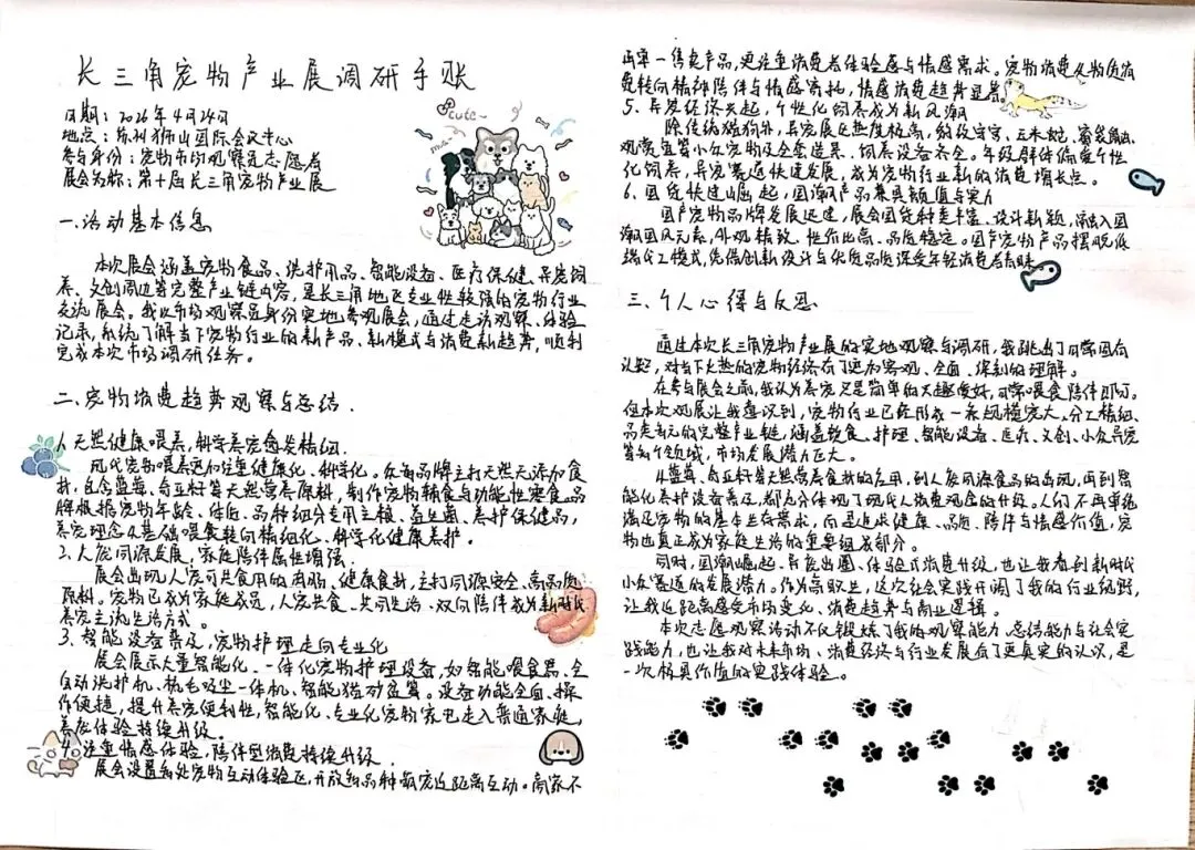 与普通观展不同,调研员们都带着专业的调研任务,从捕捉养宠消费潜力的“爆款产品摄影”,到盘点宠物消费趋势的“手写调研手账”,调研员们用镜头和笔触记录下了自己眼中萌宠经济的最新动向。他们不仅学习了前沿的产品理念,还从消费者的咨询和下单过程中捕捉到了真实的消费行为画像。
