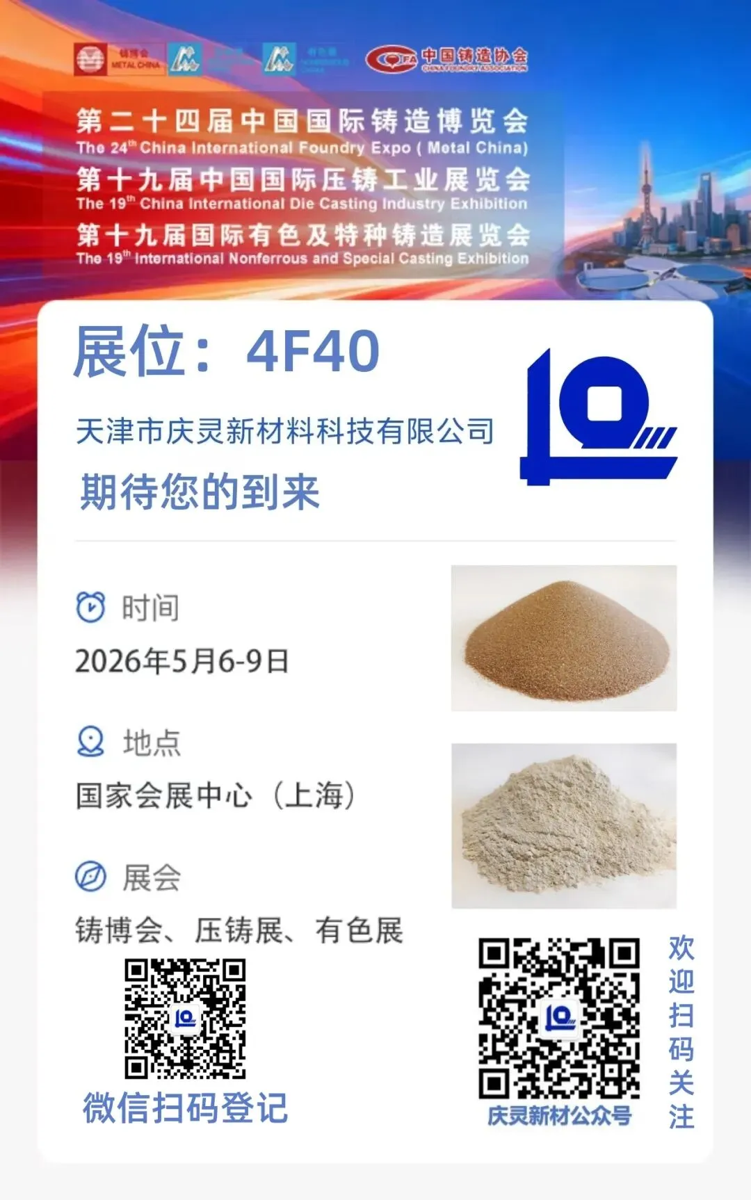 展会相约,天津庆灵新材在中国国际铸造博览会静候您的到来!