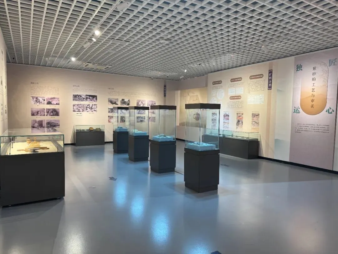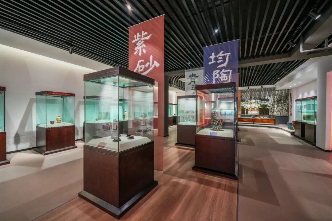 该展览以宜兴陶瓷“五朵金花”为主题,将展厅划分为紫砂、均陶、青瓷、美彩陶、精陶五大区域,展出百余件近现代陶瓷精品。每个区域依托独特的空间设计、色彩与灯光,营造出与陶种气质相符的氛围,不仅是对宜兴陶瓷瑰宝的一次系统呈现,更是让传统陶艺走出展柜、融入旅程的生动实践。