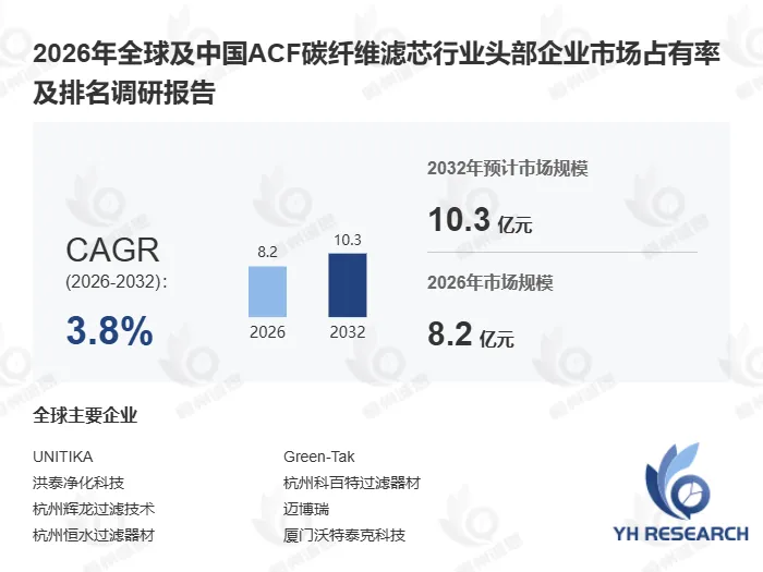 以下内容来自恒州诚思YHResearch出版的《2026年全球及中国ACF碳纤维滤芯行业头部企业市场占有率及排名调研报告》,同时提供英文,日文,韩文等不同语种版本报告。