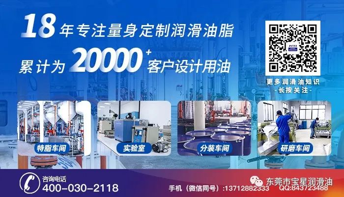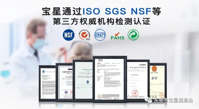 东莞市宝星润滑油有限公司,专注润滑油生产、研发、销售长达18年,超过18年的产品定制化以及润滑应用案例经验!并获得国内外NSF双认证和清真食品级润滑剂认证!免费配送润滑油脂样品,设计用油方案和改善建议,为中国制造业量身定制环保无毒的润滑油脂,是我们宝星的使命与责任,有技术问题,宝星技术团队24小时出方案协助,欢迎来电咨询!