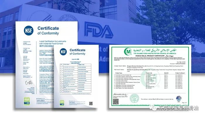 综合以上所得,清真食品级润滑剂认证与NSF食品级润滑剂认证都是针对食品加工用途而设计的认证标准,但是两者认证关注点是有差异。拥有三证的东莞市宝星润滑油有限公司是大家选择质量、卫生、安全、纯净的品牌!