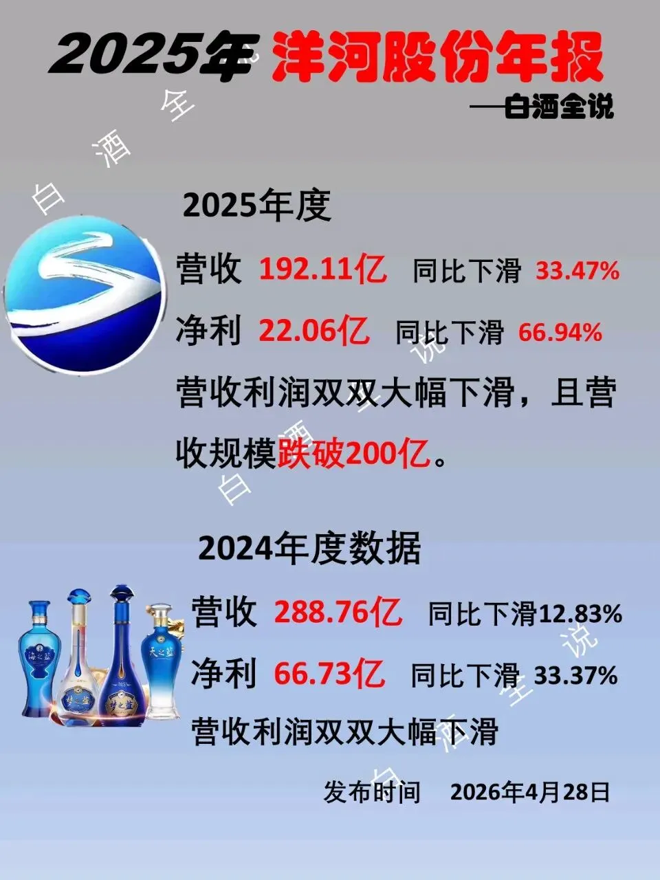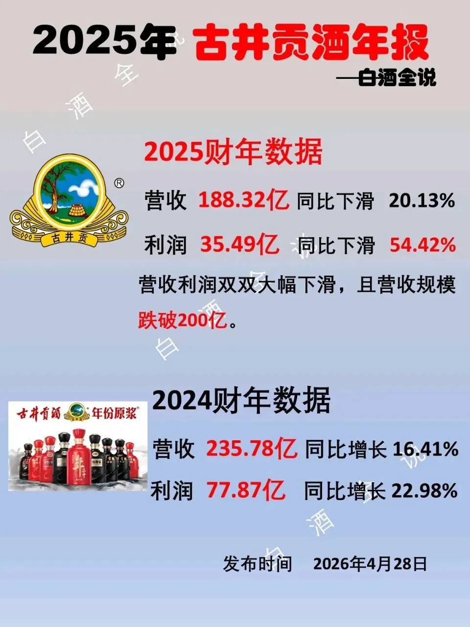 4月28日,泸州老窖、洋河股份和古井贡酒纷纷公布2025年财报。数据一经披露,让所有人都吸了一口凉气!