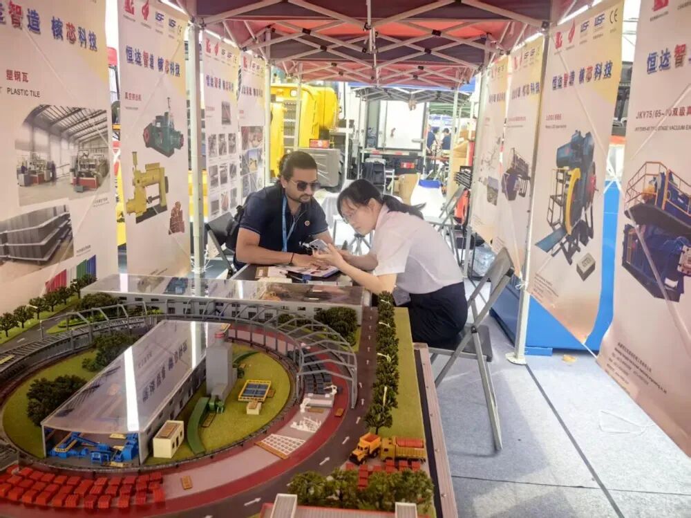 展会期间,恒达展位人气持续高涨,接待了来自 东南亚 、 印度 、 俄罗斯 等30多个国家和地区的100余名客商,其中20余家客户达成初步合作意向:- 来自俄罗斯 的客户,对移动式隧道窑和真空挤出制砖成套设备 有采购意向 ,现场咨询生产线配置与交付细节;