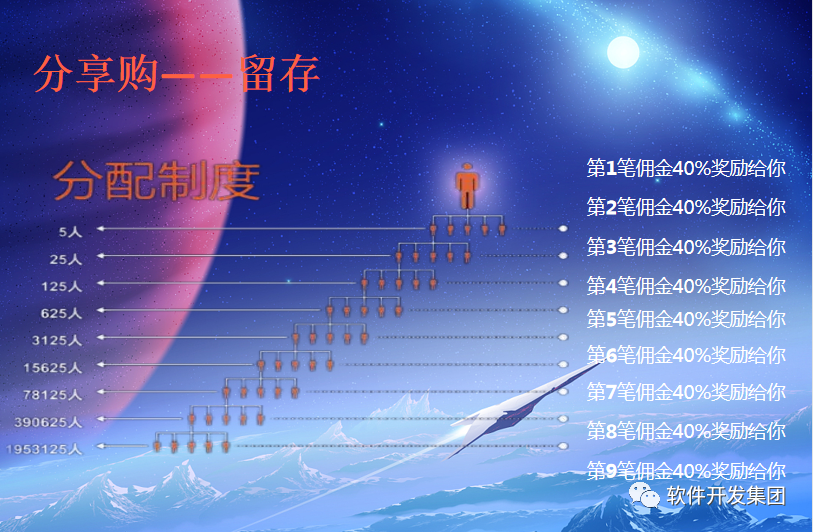 分享购商业模式——主要是解决用户的留存问题。分享购主要是五五公排滑落体系+CPS资源整合,用户会根据所排的位置,享受滚动收益,每次消费只给一层的人。