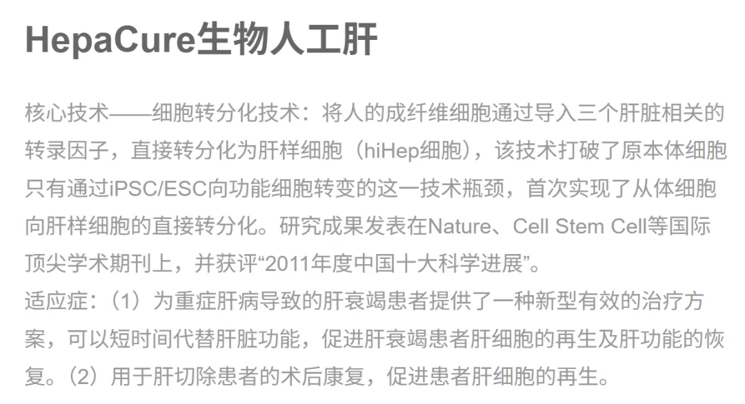 微知卓生物成立于2015年,专注于肝病细胞治疗及再生医学,其核心产品HepaCure是一种体外肝功能支持系统,主要用于急性肝衰竭等重症肝脏疾病。产品采用全球领先的肝样细胞转分化专利技术,有效解决了细胞来源、功能及潜在安全性风险等行业痛点。通俗来说,HepaCure相当于“人工肝”,可帮助因肝衰竭无法进行肝移植的患者延长生命,尤其是慢加急性肝衰竭患者。