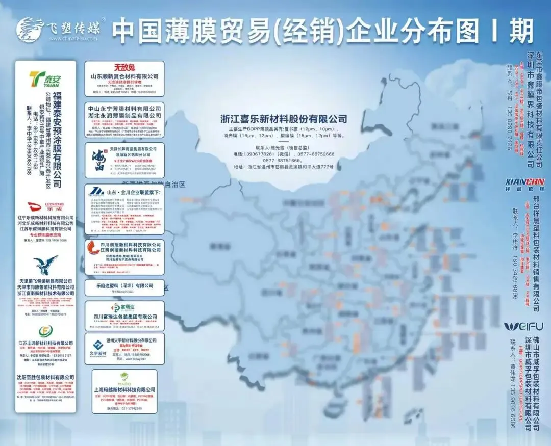 中国胶带/预涂/锂电池/电容膜/镀铝膜/BOPP/BOPET/BOPA/BOPI/BOPE行业分布图及《塑友会之薄膜与包装行业大全》2025-2026年度招商工作进行时。