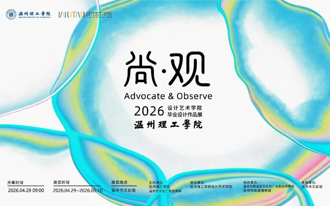 当人工智能深度融入设计领域,技术革新与人文思考交织共生,设计的边界被不断拓宽,设计的价值被重新定义。温州理工学院设计艺术学院 2026 届毕业设计展,以 “尚・观” 为题,承自然之道,观时代之变,正式启幕。