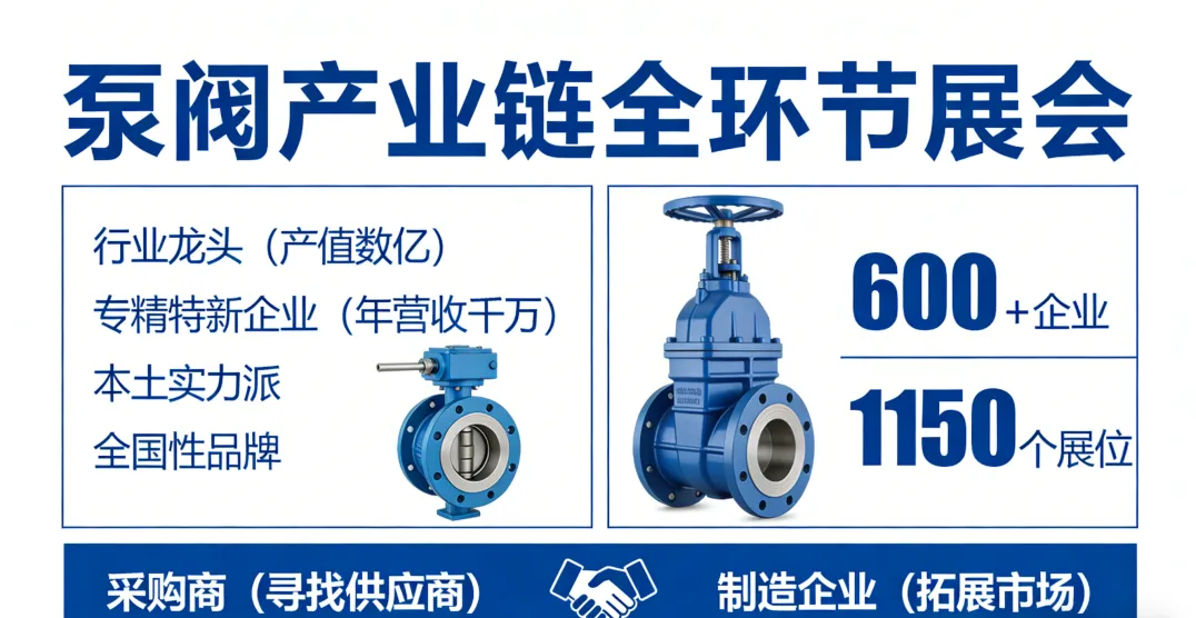 从产值数亿的行业龙头,到年营收千万的专精特新企业;从深耕本土的实力派,到跨区域布局的全国性品牌——600多家企业,1150个展位,覆盖了泵阀产业链的每一个环节。