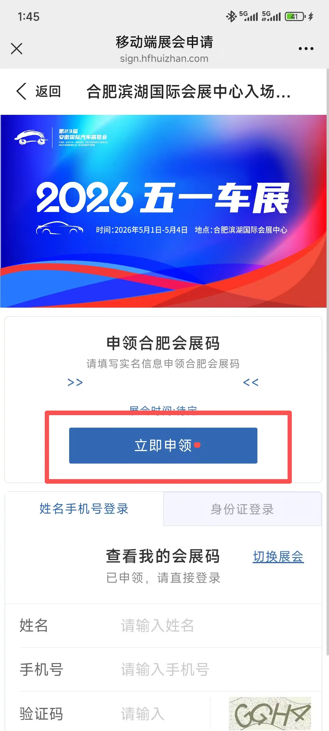 第三步:进入页面后分别依次点击“立即申领”、“入场登记”
