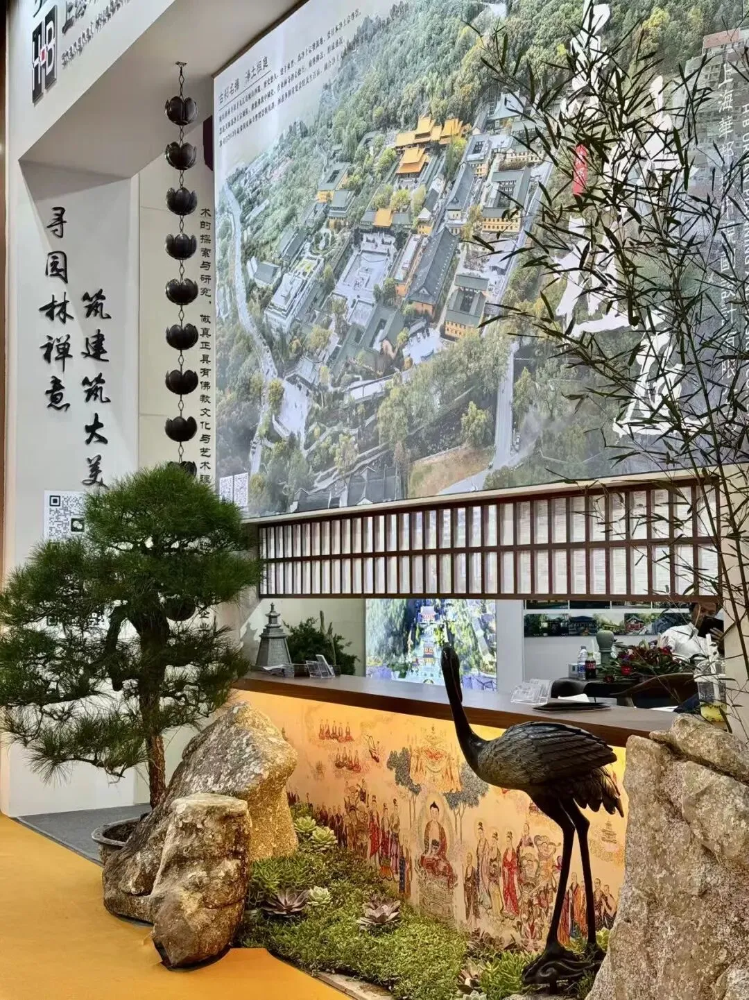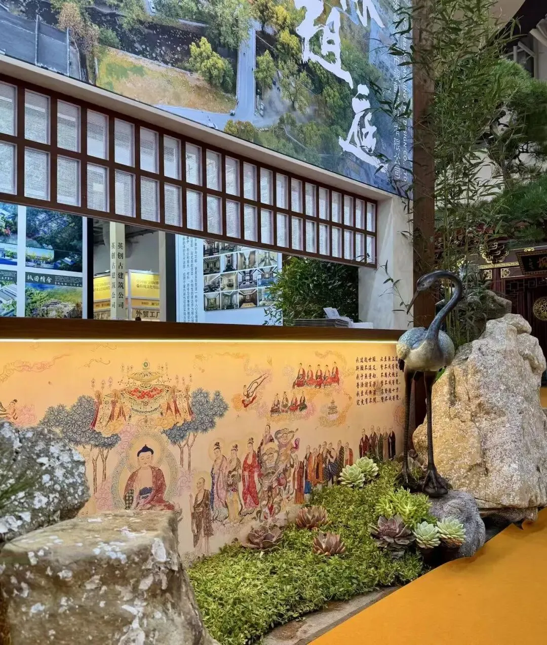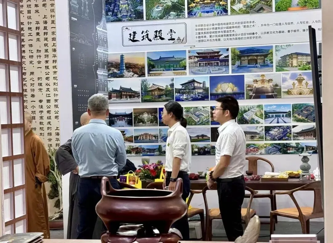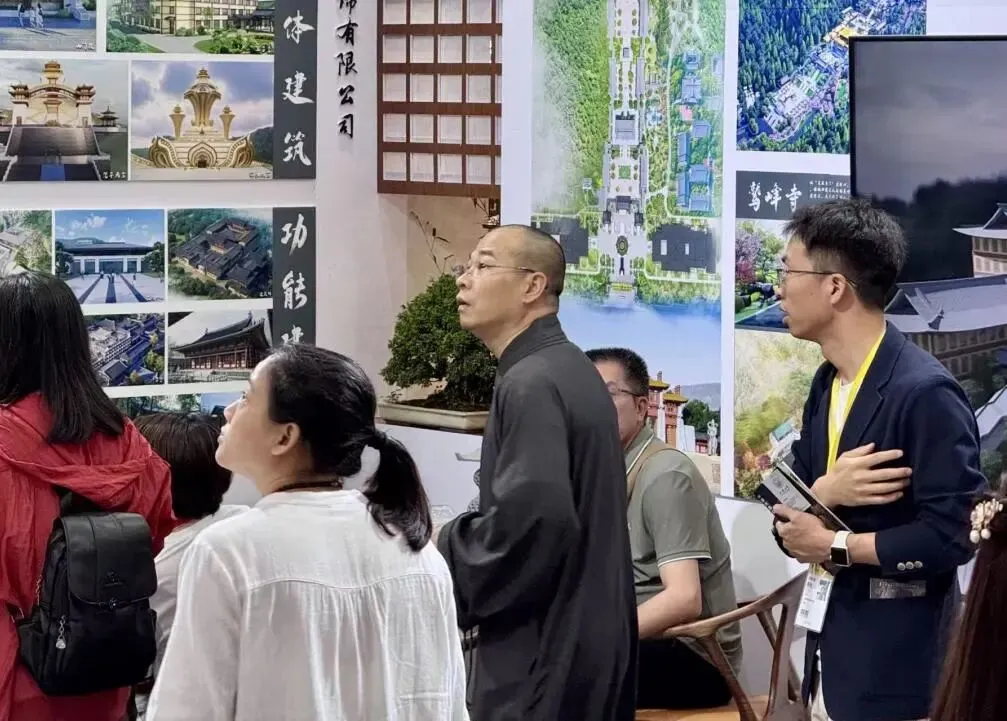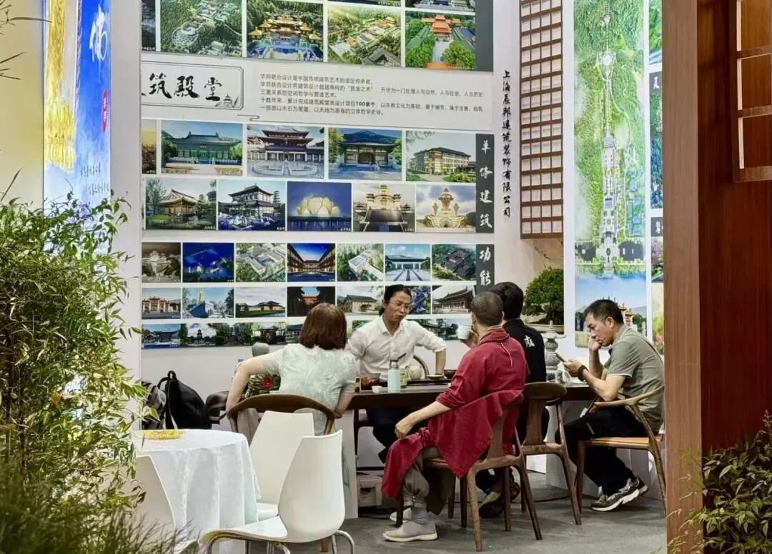 展会现场,我司展位人气持续高涨。丰富的项目案例、注入文化艺术的空间营造理念,吸引众多高僧大德、莲友居士及行业同仁驻足参观交流。大家深入了解寺庙规划、道场装饰设计、园林营造等核心成果,现场交流氛围浓厚,收获满满认可与好评。