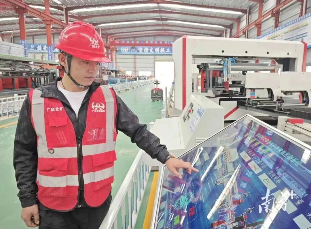 这是广韶高速北段改扩建项目创新引进的隧道拱架无人化智能生产线,可实现从原材料分拣上料、连接板高精度激光切割、机械臂智能焊接,再到数控闭环冷弯以及成品自动码垛的全流程无人化操作,在广东省高速公路建设领域尚属首条。