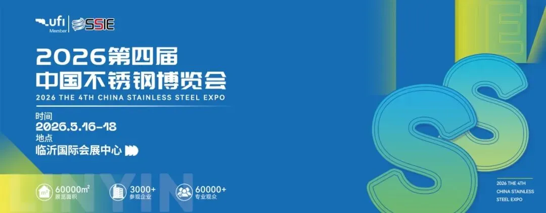 2026第四届中国不锈钢博览会,将于5月16-18日在山东·临沂国际会展中心隆重举行。同期举办:中国餐厨具及日用品博览会、中国阀门紧固件及管材博览会、中国激光产业博览会。