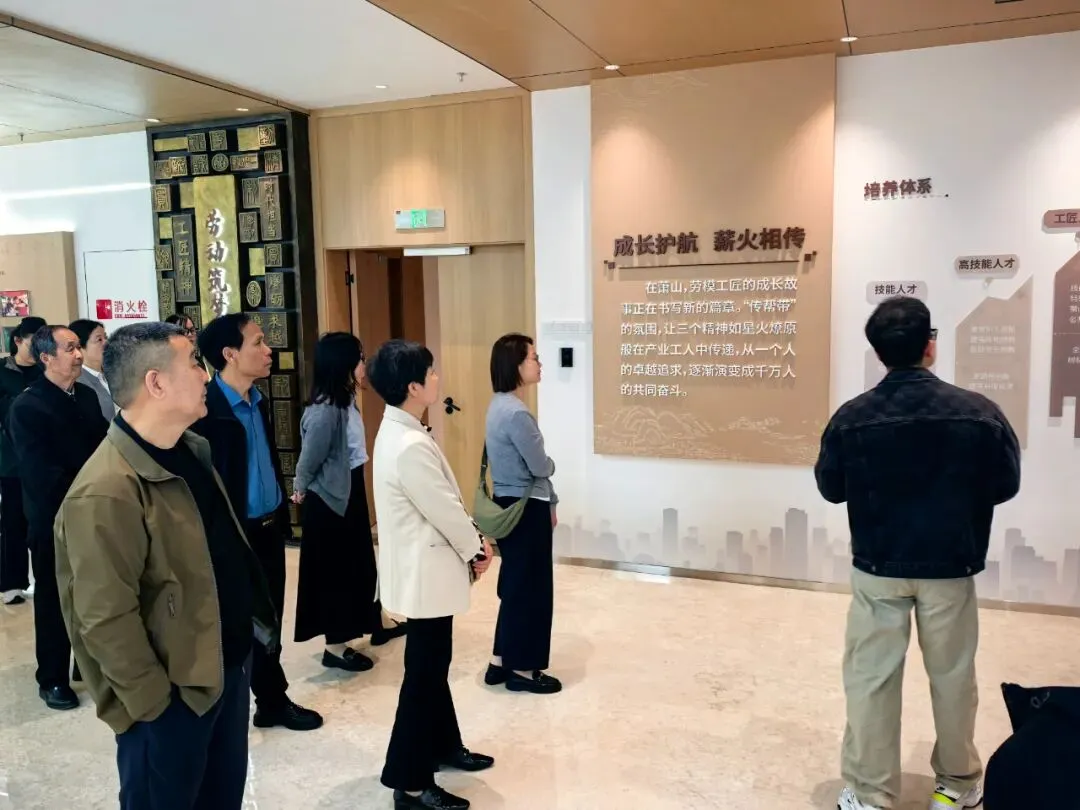 下午,团队前往萧山区工人文化宫,了解职工文化阵地建设、技能培训、文体活动开展等情况。在劳模工匠展陈馆,大家集中参观了萧山区近年来涌现的劳动模范和工匠代表的先进事迹与创新成果。