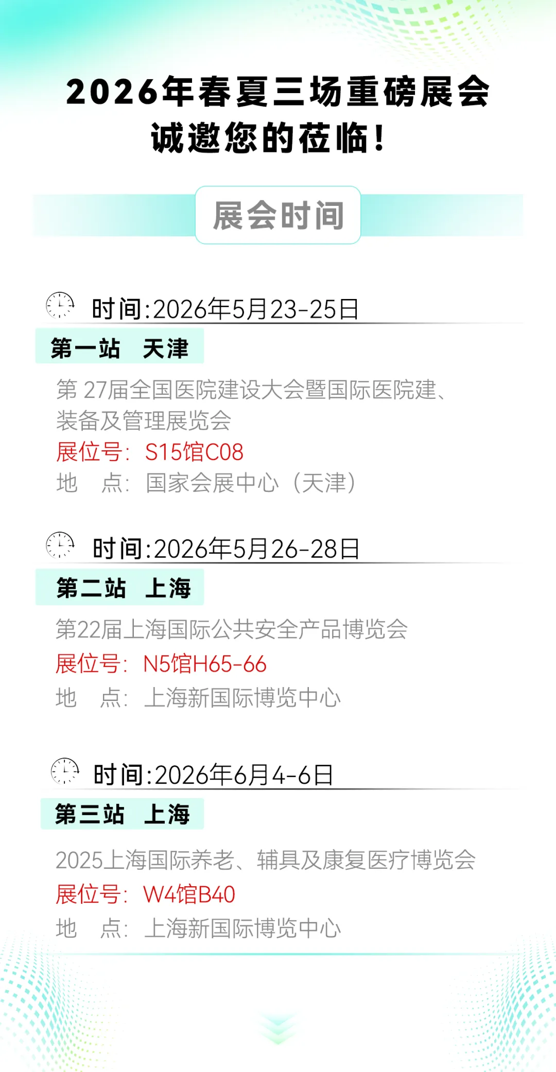 三场展会,一份承诺无论您是来采购、来交流,还是来看未来——我们已备好专业、诚意与惊喜。